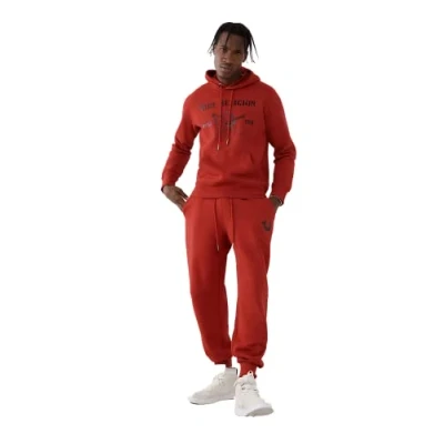 True Religion Men's Metallic Buddha Fleece Hoody, Ruby Red, M