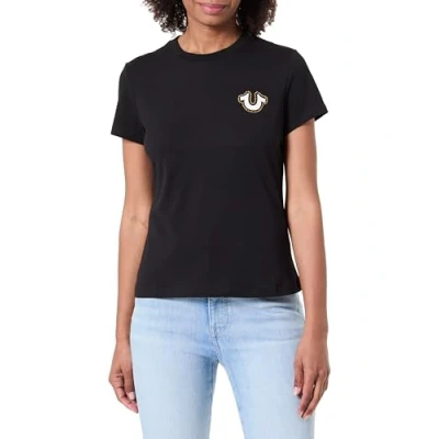 Women's short sleeve tee featuring iconic True Religion Buddha logo Glittering crystal embellishments and plastisol print for standout detail Made from a breathable cotton-poly-elastane blend