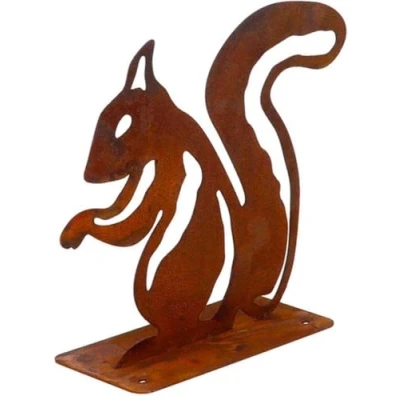 Metal Garden Squirrel,Elegant Design Animal Silhouette Stake Rusty Decoration Squirrel Rust Decorative Tree