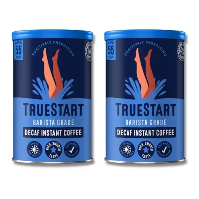 BARISTA APPROVED UK BRAND – Premium luxury decaf coffee instant from a trusted UK brand. TrueStart delivers a rich, smooth flavour using specialty-grade beans to bring the café-quality Truestart instant coffee experience home. FULL FLAVOUR DECAF – Tastes great with or without milk, this decaf instant coffee makes a strong, satisfying cup. Enjoy a healthy decaf coffee that’s carefully roasted for smooth flavour and rich body in every sip. 100% BRAZILIAN ARABICA – This coffee decaf is grown at high elevation and gently roasted to deliver a true espresso-style taste. Made from 100% Arabica beans, it’s a decaffeinated coffee that’s clean, smooth, and easy to enjoy. MIXES WITH HOT OR COLD WATER – Use decaffeinated instant coffee to make your favourite drinks at home or in recipes. Great for iced drinks, protein shakes, or coffee cakes, this decaf coffee instant dissolves fast and smooth. CERTIFIED B CORP & CARBON NEGATIVE – TrueStart Truestart instant coffee is produced responsibly, following strict environmental and social guidelines. This decaf coffee supports ethical sourcing and sustainability from bean to brew.
