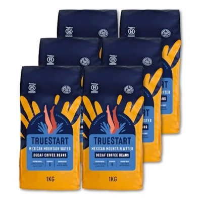 TrueStart Mexican Mountain Water Decaf Coffee Beans, 1kg (6 Pack) Arabica, Smooth & Sweet Ground Coffee, Ideal Beans for Espresso Lovers, Medium Roast