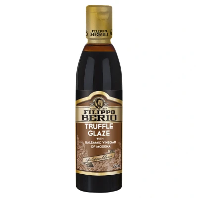 Filippo Berio Truffle Glaze With Balsamic Vinegar 250ml is a rich, thick syrup featuring an earthy truffle flavour, ideal for garnishing risotto, grilled meats, and bruschetta. Made in Italy with Balsamic Vinegar of Modena, it adds a luxurious truffle aroma to your dishes.