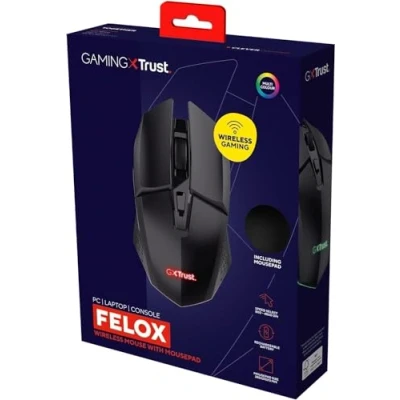 Trust Gaming GXT 112 Felox Rechargeable Wireless Mouse with Pad, 80h Playtime, 800 4800 DPI, 6 Buttons, Mat 24.5 x 21cm, RGB Computer for PC, Laptop, Windows Black