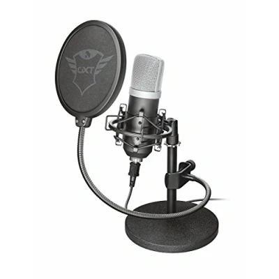 RICHEST SOUND – This PC gaming microphone delivers high-precision recordings of professional quality; The cardioid recording pattern captures your voice and music in rich, clear quality, while eliminating background noise RECORD EVERYTHING – Whether you record podcasts, vlogs, voice-overs, music or if you stream on YouTube, Twitch or Facebook, this microphone for PC and gaming is a perfect fit for all your recordings; Simply plug the USB connector into your laptop or PC SOUND PROFESSIONAL – The Emita is equipped with a large double-screen pop filter, that minimises plosives (like P’s and B’s) for professional recordings; The included foam cap eliminates blowing sounds – perfect for outdoor use SUPER STABLE – Thanks to the heavy weight metal stand and the high-end shock mount, the Trust Emita USB Streaming Microphone provides stable, tremble-free recordings - even trembles caused by typing and mouse movements won't travel up the microphone stand TRAVEL MICROPHONE – Thanks to the durable aluminium flight case, this condenser microphone is perfect for outdoor recording; The case will ensure safe storage when travelling