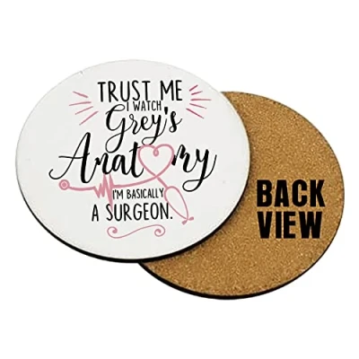 Trust Me I Watch I'm Basically A Surgeon Birthday Secret Santa Coaster, Tableware, Drinks Coffee Tea Coaster. (Round Coaster MDF)