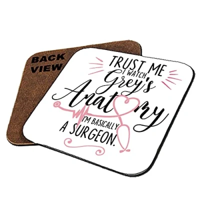 Trust Me I Watch I'm Basically A Surgeon Birthday Secret Santa Coaster, Tableware, Drinks Coffee Tea Coaster. (Square Coaster MDF)