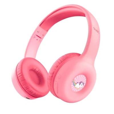 Trust Nouna Kids Headphones Wireless with Safe Volume Limit (85dB) for Girls, Children Age 4 10, On Ear Foldable Headset Microphone, Bluetooth Stickers, 15h Playtime, Pink