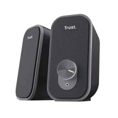 Trust Orada 2.0 PC Speakers for Desktop, 12W (6W RMS), Compact USB Speaker Set, Jack AUX 3.5mm, Headphone Connection, Fabric Front, Stereo Computer Laptop Mac, Black