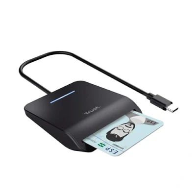 Trust Primo USB C Smart ID Card Reader DNI, FIPS 201 / TAA and ISO 7816 Class A/B/C Compliant, 100cm Cable, Secure Login, Compatible with Windows/Mac, Personal Identification