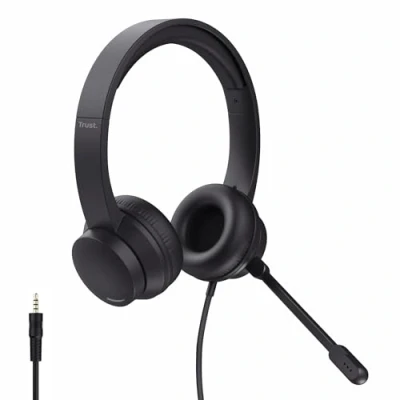Trust Roha II Lightweight On Ear PC Headset with Mic 3.5mm, 1.8m Cable, Adjustable Headband, Wired Headphones Microphone for Computer Laptop Desktop Mac Home Office Zoom Teams, Black