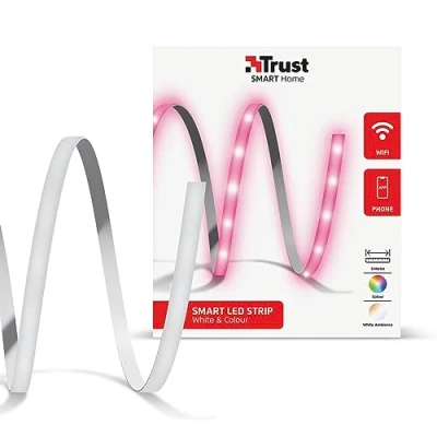 NO HUB REQUIRED – If you have WIFI, you can now control your lighting with your smartphone; add the smart LED strip lights to the free Trust WIFI app and use your phone/tablet as a remote control PERFECT AMBIANCE – With this tunable LED strip you can easily create the right setting to fit your mood; select warm light for a relaxing atmosphere or cool white light for those moments that require optimal concentration (1800K-6500K) SMART SCENARIOS – switch your LED lights at fixed times or several lights at the same time: with "smart scenarios" you can create scenes and automate your lighting as desired using timers and conditions EASY VOICE CONTROL – No need to search for your phone to change the lighting, with the voice control option Alexa or Google Home will create the perfect lighting every time EXPAND WITH PLUGS – Why stop at lighting? With the Trust WIFI plug you can operate any corded device with your smartphone; set up the smart scenarios and you will be saving energy in no time