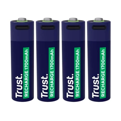 Trust USB C Rechargeable Battery AA 4 Pack, Built in Port, No Charger Necessary, Cable Included, 1700mAh High Capacity Batteries via Phone Charger/USB Pack of