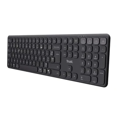 Trust Vaiya Wireless Bluetooth Keyboard + 2.4Gz AZERTY French Rechargeable Multi Device with Numeric Keypad, 55% Recycled Plastic, Windows iOS iPadOS MacOS Android, Black