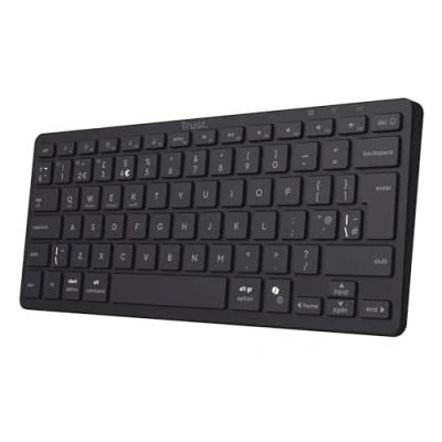 Trust Vira Wireless Bluetooth Keyboard QWERTY UK Layout, Multi device Compact with 3x Connections, Rechargeable Battery, Scissor Keys Low Profile, Windows iOS macOS Android, Black