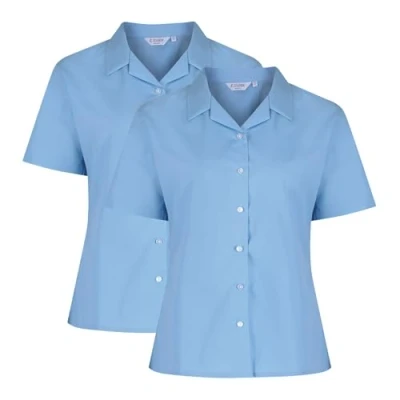 Trutex 2 Pack Girls Short Sleeve School Shirts with Revere Collar (3 16+ Years), Standard Fit Shirts, x Non Iron Genuine Uniform Blue