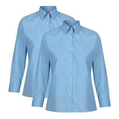 Trutex 2 Pack School Shirt Girls Blouses Long Sleeve Non Iron Uniform (Age 12 Years / 32" Chest, Blue)