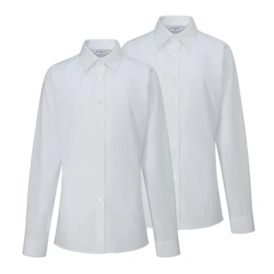 Trutex Basics 2 Pack Long Sleeve White School Blouses for Girls (3 16+ Yrs). Slim Fit Shirts, Shirts Girls, Easy Iron Genuine Uniform