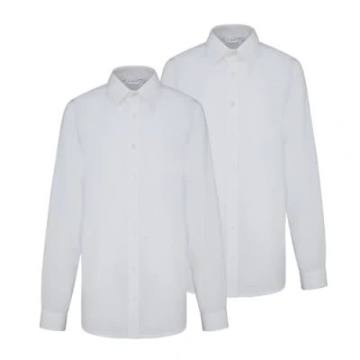 Trutex Basics 2 Pack Long Sleeve White School Shirts Boys (3 16+ Years) Slim Fit for Boys, Easy Iron Shirts, Button Down Shirt Genuine Uniform
