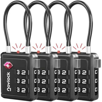 【5-Year Warranty】As a trusted EUROPEAN lock brand and officially licensed TSA distributor, we offer a 5-year warranty on all our luggage locks. Travel with confidence using NovLock. 【TSA Approved & Inspection Alert】All our suitcase locks are TSA accepted. At 750+ airports across 75+ countries, TSA agents can inspect and relock your luggage without causing any damage. A red indicator pops up when the lock has been opened by TSA, so you’ll know exactly if your luggage was inspected. 【Perfectly Sized】These travel padlocks with a flexible cable fit standard zipper holes and any opening larger than 4mm. Ideal for all types of luggage – including suitcases, backpacks, laptop bags, sports bags, and duffel bags – and also perfect for daily use on lockers, cabinets, and more. 【High Quality】The lock body is made of durable, impact-resistant zinc alloy – perfect for rough handling at airports. The braided steel cable is extra strong, cut-resistant, and has passed pull tests of over 240kg. Equipped with the latest TSA008 mechanism for enhanced security and greater tamper resistance than older versions. 【Easy to Use】Features an upgraded reset switch on the side of the combination lock, making setup and resetting easier than with other TSA locks. The dials turn smoothly, align easily, and have bold, high-contrast numbers for quick, clear reading., Weight: 0.1322773572 pounds, Manufacturer: NovLock