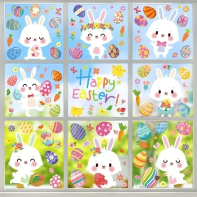 🐰 Easter Window Stickers 🐰 Enhance your Easter decor with our set of 130pcs Easter window stickers, conveniently arranged in 9 Sheets. These stickers feature adorable designs such as rabbits, eggs, carrots, egg baskets, flower wreaths, flowers, and butterflies, each in different sizes and shapes, adding beauty and uniqueness to your festive display. 🐥 Suitable Surface 🐥 Our happy easter stickers decorations are perfect for embellishing windows, mirrors, and glass doors. Prior to applying the clings, ensure that the surfaces are clean and free from dust or grease. Please note that these Easter window stickers are not suitable for textured surfaces or to be used as wall decals. 🐣 Reusable Window Stickers 🐣 Crafted from high-quality PVC materials, our window stickers are durable and effortlessly cling to windows and glass doors. You can easily peel them off without leaving any residue, making them reusable for future Easter celebrations. 🐔 How to Use 🐔 For optimal results, ensure that the surface is smooth and free from any texture. Thoroughly clean the surface to remove any dust or grease. Apply the stickers, smoothing out any air bubbles, and remove any remaining water for a seamless display. 🎁 Versatile Easter Stickers - Our Easter decorations window stickers are suitable for a variety of smooth surfaces, including windows, mirrors, fridges, and cupboards. These lovely Easter window clings exude a sense of life and hope, infusing your space with a vibrant springtime feel. They are ideal for decorating shops, schools, and homes, and make for the perfect Easter gift for children.