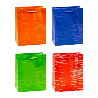 4 designs assorted PP foil lamination with matte finish Dimension: 9 x 7 x 4 inch (23 x 18 x 10 cm) water and tear resistant with rope handle & gift tag