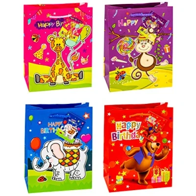 AmazonDimensions (W x D x H): 18 x 10 x 23 cm, complies with DIN A5 format Series: birthday animals Size: Medium 4 assorted designs Waterproof and tear-resistant Matte polypropylene film lamination. With plastic cord and matching label