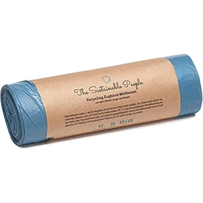 Contents: TSP recycled drawstring bin liners, 35 litres, 1 roll of 15 pieces, dimensions: 65 cm height x 55 cm width (circumference = 110 cm). Resource-friendly: the material used comes to at least 90% from post-consumer waste (PE), e.g. from the household recycling collection such as the yellow bag. This means a significant saving of CO₂ compared to fresh PE from new granules. Recyclable: TSP recycled drawstring bin liners are made in the EU and are made from a mono material (PE), which makes them very easy to recycle, ideal for recycling. The film-free packaging (bandole made of FSC certified material) is also recyclable, in recycled paper. Safety: TSP recycled bin liners are tear-resistant and waterproof, allowing easy and hygienic waste collection. Drawstring: The sturdy drawstring allows for easy tying and comfortable carrying. Easy open: thanks to the integrated tear-off strip, the sleeve can be easily opened. Blue Angel: TSP recycled drawstring bin liners are at least 90% made from post-consumer recycled plastics, are limited to harmful substances and thus meet the requirements of the "Blue Angel" eco-label according to uz30a Number of units: 15.0 Unit Type: Piece Number of items: 1