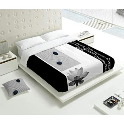 Includes: 1 x duvet cover + 1 x white pillowcase Square cushions shown in the photo are sold separately; not including fitted sheet Composition: 100% cotton 144 threads; digital printing; flap closure Bed measures 135: 1 duvet cover: 220x220 cm; and 1 white pillowcase: 45x150 cm Washing: machine washable at 40º; wash inside out; first wash must be done separately; can be ironed at 150º; do not dry clean; lay immediately after the wash cycle is finished