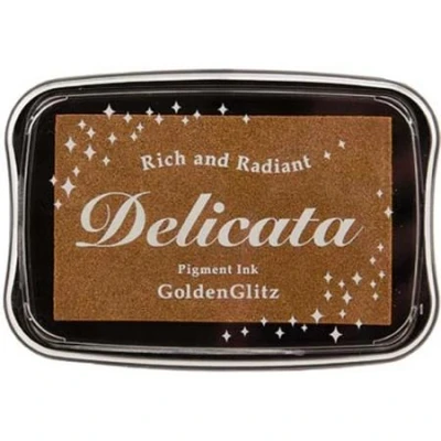 Tsukineko Delicata Ink Pad for Stamping Gold, Golden Glitz Large Water based Archival resistant