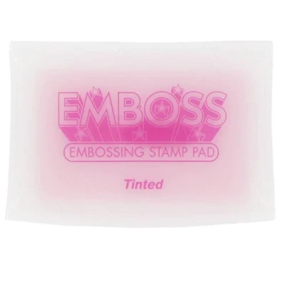Emboss Ink Pad for Stamps Tinted. Loaded with Acid-free embossing ink the raised Emboss pad works great for any size stamp. The hinged lid flips under the pad for easy handling and the Clear and Tinted inks keep your embossing powder colours true.. The raised pad allows inking of even the largest stamps and the slow drying water soluble formula allows ample time to apply embossing powder.. • Tinted light pink. • Child safe and acid free. SEM-T