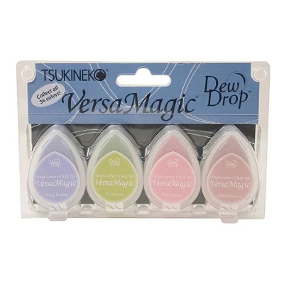 VersaMagic 4 Piece Set Flower Pot. The perfect chalk pigment ink that dries beautifully on any color cardstock- even dark cardstock! Soft, opaque, chalk-like look with none of that chalky residue.. VersaMagic is a softly opaque pigment ink that dries into a delicate chalky finish.. Use for cardmaking, journals, scrapbooks and more. Ideal for stamping and stencilling. Can be used on paper, vellum, shrink plastic, polymer clay, wood and leather. Comes in a palette of soft, delicate and richly-hued colours. These pads feature a substantially raised inkpad surface to accommodate even the largest stamps without interference from the inkpad case. Fast drying and highly fade-resistant. Archival and acid-free. VersaMagic is available in full-size inkpads, Dew Drop inkpads and Inkers. Not all colours are available in all product forms. Water-based; archival and acid free. VersaMagic Dew Drop inkpads: 1.25 x 2 inches (32 x 50mm). Video Introduction: VersaMagic Chalk-finish Pigment Ink. GD-100-007