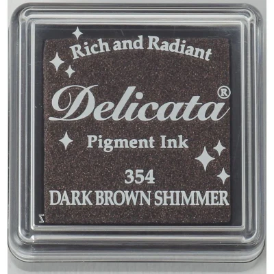 Delicata Dark Brown Shimmer. Delicata is the latest generation of metallic inkpad. Remarkably true and bright, it outshines other inkpads and provides stamping results that resemble the true effects of gold and silver leafing without the mess. Great for the holidays and for year-round bling.. Water-based, essentially odourless, and highly fade-resistant pigment ink. Air dries quickly and cleans up easily with StazOn All-Purpose Stamp Cleaner. Available in full-size ink pads and inkers. These pads feature a substantially raised ink pad surface to accommodate even the largest stamps without interference from the inkpad case. Archival and acid-free. Conforms to ASTM D-4236. Pad size Width 34 x Depth 34 x Height 20 mm. Tip: For the most lustrous results, let Delicata air dry rather than using a heat gun to dry.Video Link: Product Overview Delicata Ink Pads. DE-SML-354