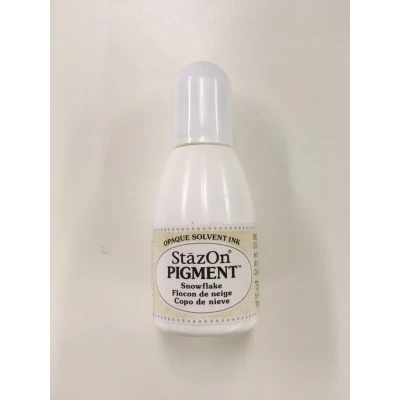 Stazon Pigment Inker SnowflakeOpaque Solvent Ink, For use on non-porous surfaces such as plastic, metal, glossy papers and more. Drying time varies by surfaceand amount of ink applied. Keep pad covered when not in use. MPN RZ-PIG-001