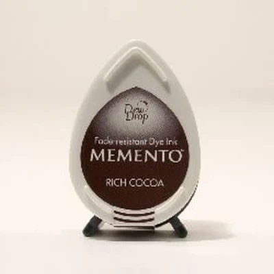 Rich Cocoa Memento Dew Drop dye Ink Pad for Stamps is fast drying and fade resistant. The innovative pad delivers finer impressions and exceptionally even coverage.. MD-800 To aid your keyword search this product has been categorised as Christmas and Wedding. Application - Coated paper, vellum, uncoated paper, printer paper. Drying time - 3 to 5 seconds on coated paper. Virtually instant on uncoated papers. Varies based on surface / material, humidity, etc.. Particularly for glossy vellum and coated paper are suited for reproducing fine detail and lines.. Dries very quickly for regular paper like New Years Greeting post cards and schedule stamps.. Brilliancy of the ink is more obvious than regular dye ink resist for water and light.. Memento Dew Drop is suited for colouring the boarder lines and fine detail art works.. Can be used with ink blender for shading and spray effect. *please refer to ink blender.. It is possible to mix with inker.. L size Memento comes with the sticker on side of the cover for easy identification. MD-800