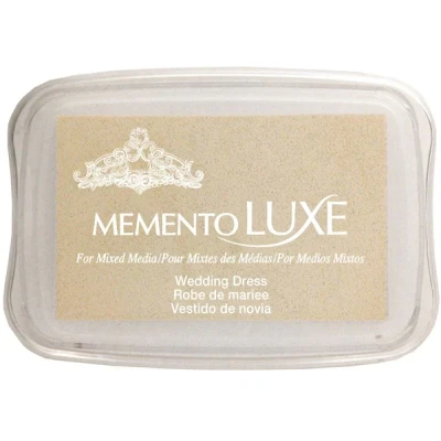 Wedding Dress Memento Luxe Ink Pad.. Mixed media ink for use on any porous surface; permanent on fabric when heat set. Available in 24 colors similar to the Memento line. A great ink for paper projects as well as mixed media. Relatively fast drying for a pigment ink. Highly fade resistant.. Size 96 x 63 x 20mm. Raised pad. Tsukineko Memento Luxe Wedding Dress Ink Pad Demo. ML-000-910