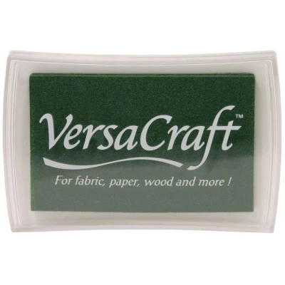 Pine Versacraft Pad. Use VersaCraft on a variety of surfaces such as fabric, paper, wood, leather, unglazed ceramic, paper mache and shrink plastic. When stamping on fabric, heat setting is required and fabric should be pre-washed to remove sizing. VersaCraft is also great for archival scrapbooking projects due to its opacity and permanence.. Raised pad size 76mm x 47mm. Application - Fabric, unpainted wood, uncoated paper, Japanese papers,. leather(tanned leather), unglazed pottery. Drying - Needs to include drying time for paper. Treat with heat source (dryer, iron or heat gun) for at least 15 seconds for permanence. Drying time varies based on surface/material, humidity, etc.. When heat setting with an iron, place a cloth between your project and the iron.. Ink must be heat set on textiles with an iron. It is recommended that the “cotton” or “high” temperature setting be used for at least 15 seconds. Lower temperature settings may result in decreased permanence.. After heat setting, items can be washed and images will remain (varies by fabric type.) Use hair dryer to heat set VersaCraft on wood and terracotta. Ink may wash out of fabrics prior to heat setting (some staining may occur.). VK-165