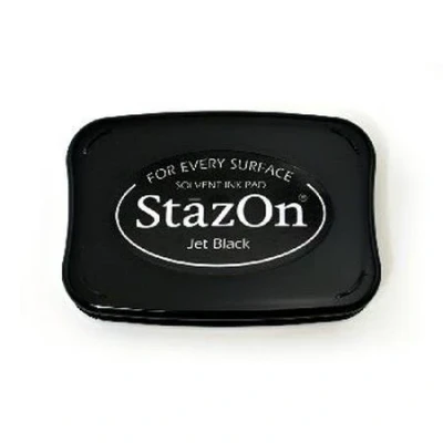 Jet Black StazOn Ink Pad for Stamps. Size 3.75 x 2.625 inches (96 x 67 mm).. StazOn inkpads are the industry leader in multi-surface stamping; StazOns highly versatile inks adhere to most acetate, acrylic, metal, leather, shrink plastic, cellophane, plastic and glass. StazOn inks also work great on paper!. Use for wide range of mixed media projects, card making, memory albums, home and office decor, and an endless creative universe of other projects. Available in full-size inkpads, inkers and wide mouth bottles in a wide range of colours. These pads feature a substantially raised inkpad surface to accommodate even the largest stamps without interference from the inkpad case. StazOn is offered in its original translucent finish, in StazOn Opaque for a more opaque finish and as StazOn Metallic for a metallic finish. StazOn Opaque and Metallic pads come in a kit containing an un-inked pad an Inker bottle. Archival and acid free. Video Link: An introduction to StazOn Ink. SZ-31