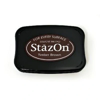 Timber Brown StazOn Ink Pad for Stamps. Size 3.75 x 2.625 inches (96 x 67 mm).. StazOn inkpads are the industry leader in multi-surface stamping; StazOns highly versatile inks adhere to most acetate, acrylic, metal, leather, shrink plastic, cellophane, plastic and glass. StazOn inks also work great on paper!. Use for wide range of mixed media projects, card making, memory albums, home and office decor, and an endless creative universe of other projects. Available in full-size inkpads, inkers and wide mouth bottles in a wide range of colours. These pads feature a substantially raised inkpad surface to accommodate even the largest stamps without interference from the inkpad case. StazOn is offered in its original translucent finish, in StazOn Opaque for a more opaque finish and as StazOn Metallic for a metallic finish. StazOn Opaque and Metallic pads come in a kit containing an un-inked pad an Inker bottle. Archival and acid free. Video Link: An introduction to StazOn Ink. SZ-41