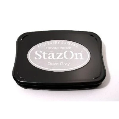 Dove Grey StazOn Ink Pad for Stamps. Size 3.75 x 2.625 inches (96 x 67 mm).. StazOn inkpads are the industry leader in multi-surface stamping; StazOns highly versatile inks adhere to most acetate, acrylic, metal, leather, shrink plastic, cellophane, plastic and glass. StazOn inks also work great on paper!. Use for wide range of mixed media projects, card making, memory albums, home and office decor, and an endless creative universe of other projects. Available in full-size inkpads, inkers and wide mouth bottles in a wide range of colours. These pads feature a substantially raised inkpad surface to accommodate even the largest stamps without interference from the inkpad case. StazOn is offered in its original translucent finish, in StazOn Opaque for a more opaque finish and as StazOn Metallic for a metallic finish. StazOn Opaque and Metallic pads come in a kit containing an un-inked pad an Inker bottle. Archival and acid free. Video Link: An introduction to StazOn Ink. SZ-33
