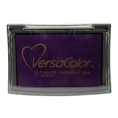 Violet Versacolor Pigment Ink Pad for Stamps. Versacolor combines the highest quality raw materials including a superior ink recipe a stackable container with a unique hinged lid and an ultra-dense foam pad for crisper stamped images.. VC1-17 To aid your keyword search this product has been categorised as Christmas and Wedding. Raised pad size 76mm x 46mm. Application - Uncoated paper. Drying time - 10 to 15 minutes on uncoated papers. Varies based on weight / type of paper, humidity, etc.. Embossing - Very suitable since it dries slowly. (recommended to use transparent embossing powder). An exceptionally large colour line ensures you have the perfect colour every time.. Fade resistant, traditional pigment ink.. VC1-17