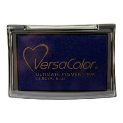 Royal Blue Versacolor Pigment Ink Pad for Stamps. Versacolor combines the highest quality raw materials including a superior ink recipe a stackable container with a unique hinged lid and an ultra-dense foam pad for crisper stamped images.. VC1-18 To aid your keyword search this product has been categorised as Christmas and Wedding. Raised pad size 76mm x 46mm. Application - Uncoated paper. Drying time - 10 to 15 minutes on uncoated papers. Varies based on weight / type of paper, humidity, etc.. Embossing - Very suitable since it dries slowly. (recommended to use transparent embossing powder). An exceptionally large colour line ensures you have the perfect colour every time.. Fade resistant, traditional pigment ink.. VC1-18