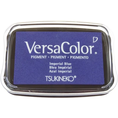 Imperial Blue Versacolor Pigment Ink Pad for Stamps. Versacolor combines the highest quality raw materials including a superior ink recipe a stackable container with a unique hinged lid and an ultra-dense foam pad for crisper stamped images.. VC1-103 To aid your keyword search this product has been categorised as Christmas and Wedding. Raised pad size 76mm x 46mm. Application - Uncoated paper. Drying time - 10 to 15 minutes on uncoated papers. Varies based on weight / type of paper, humidity, etc.. Embossing - Very suitable since it dries slowly. (recommended to use transparent embossing powder). An exceptionally large colour line ensures you have the perfect colour every time.. Fade resistant, traditional pigment ink.. VC1-103