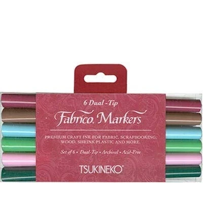 DUAL TIP MARKER PENS - VersaCraft Fabrico markers feature both a brush nib and a fine nib, making them ideal for both larger projects and detailed artwork PERMANENT MARKER - Once heat-set, the ink is highly fade-resistant; use an iron or dryer to set the ink and make it permanent, depending on the material VARIOUS MATERIALS - Fabrico coloured pens work seamlessly on a variety of surfaces, such as fabric, wood, cardstock, washi paper, (vegetable-tanned) leather and unglazed pottery (terracotta) SCRAPBOOKING & ART SUPPLIES - The felt tip pens are perfect for stamping, drawing, card making and calligraphy art, as well as craft projects using wood, fabric and other porous materials CONTENT - VersaCraft Fabrico markers by Tsukineko have the same usage as VersaCraft ink; this Arboretum set contains 6 dual-tip markers with water-based pigment ink that can be both air dried and heat-set