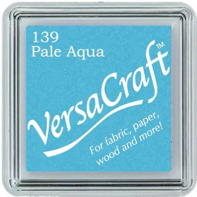 Pale Aqua Versacraft Small Fabric Ink Pad for Stamps. Use on a variety of surfaces fabric paper wood and more. When stamping on fabric heat set and pre-wash to remove sizing. Great for archival scrapbooking projects due to its opacity and permanence.. To aid your keyword search this product has been categorised as Christmas and Wedding. Raised pad size 24mm x 24mm. Application - Fabric, unpainted wood, uncoated paper, Japanese papers,. leather(tanned leather), unglazed pottery. Drying - Needs to include drying time for paper. Treat with heat source (dryer, iron or heat gun) for at least 15 seconds for permanence. Drying time varies based on surface/material, humidity, etc.. When heat setting with an iron, place a cloth between your project and the iron.. Ink must be heat set on textiles with an iron. It is recommended that the “cotton” or “high” temperature setting be used for at least 15 seconds. Lower temperature settings may result in decreased permanence.. After heat setting, items can be washed and images will remain (varies by fabric type.) Use hair dryer to heat set VersaCraft on wood and terracotta. Ink may wash out of fabrics prior to heat setting (some staining may occur.). VKS-139