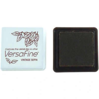 Vintage Sepia Versafine Small Ink Pad for Stamps.. Pigment-based VersaFine ink is the best stamping ink available!. Crisply captures the most finely detailed stamp images. Dries unusually quickly on porous surfaces; embossable on coated surfaces. Water-resistant when dry. Perfect with Memento water-based markers and in other watercolour applications. These pads feature a substantially raised inkpad surface to accommodate even the largest stamps without interference from the inkpad case. Full-size inkpads feature a hinged lid to keep pad and lid from separating. Available in a range of rich and earthy colours. Offered in full-size and small inkpads. Inkers available in select colours. Archival and acid free. VersaFine small inkpads: 1.25 x 1.25 inches (33 x 33 mm). Product Overview. Many seasoned crafters view VersaFine as the finest inkpad available. VersaFine is extraordinary.. Video Link: VersaFine Ink by Tsukineko. VFS-54