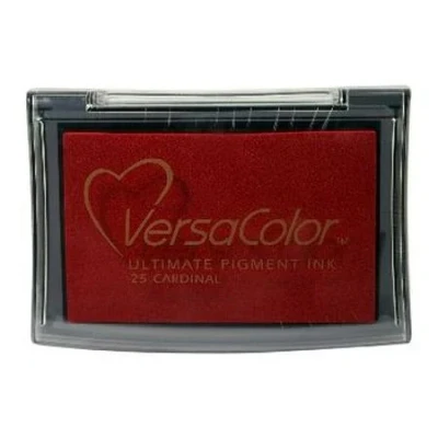 Cardinal Versacolor Pigment Ink Pad for Stamps. Versacolor combines the highest quality raw materials including a superior ink recipe a stackable container with a unique hinged lid and an ultra-dense foam pad for crisper stamped images.. VC1-25 To aid your keyword search this product has been categorised as Christmas and Wedding. Raised pad size 76mm x 46mm. Application - Uncoated paper. Drying time - 10 to 15 minutes on uncoated papers. Varies based on weight / type of paper, humidity, etc.. Embossing - Very suitable since it dries slowly. (recommended to use transparent embossing powder). An exceptionally large colour line ensures you have the perfect colour every time.. Fade resistant, traditional pigment ink.. VC1-25
