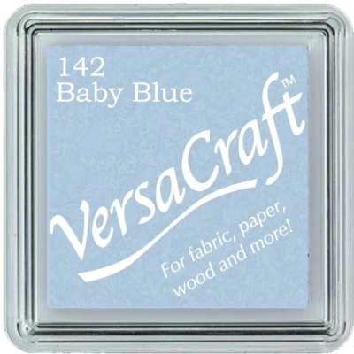 Baby Blue Versacraft Small Fabric Ink Pad for Stamps. Use on a variety of surfaces fabric paper wood and more. When stamping on fabric heat set and pre-wash to remove sizing. Great for archival scrapbooking projects due to its opacity and permanence.. To aid your keyword search this product has been categorised as Christmas and Wedding. Raised pad size 24mm x 24mm. Application - Fabric, unpainted wood, uncoated paper, Japanese papers,. leather(tanned leather), unglazed pottery. Drying - Needs to include drying time for paper. Treat with heat source (dryer, iron or heat gun) for at least 15 seconds for permanence. Drying time varies based on surface/material, humidity, etc.. When heat setting with an iron, place a cloth between your project and the iron.. Ink must be heat set on textiles with an iron. It is recommended that the “cotton” or “high” temperature setting be used for at least 15 seconds. Lower temperature settings may result in decreased permanence.. After heat setting, items can be washed and images will remain (varies by fabric type.) Use hair dryer to heat set VersaCraft on wood and terracotta. Ink may wash out of fabrics prior to heat setting (some staining may occur.). VKS-142