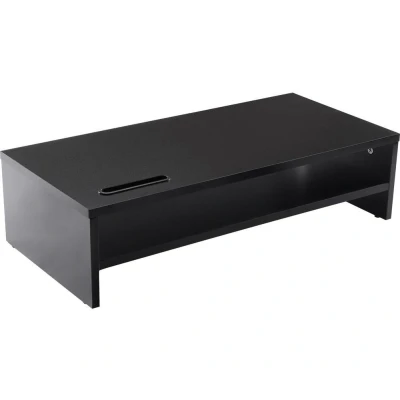 Ttap Black Wooden Monitor Two Shelf Stand Computer Laptop TV Screen Riser Desk Organiser 54cm L x 24.5cm D 14.4cm H (with Smartphone holder)