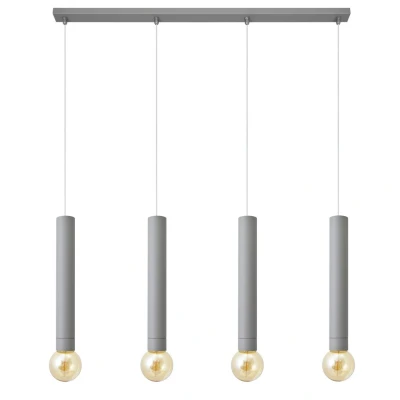 A blend of mid-century modern style and contemporary attitude the Tuba 40cm Grey 4-Light Straight Bar Pendant Ceiling Light with exposed bulbs is an eye-catching fixture to light up any space beautifully. Its elongated style is sure to make a statement while bringing soft light to a living room, dining area or entryway.