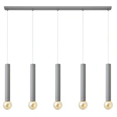 A blend of mid-century modern style and contemporary attitude the Tuba 120cm Grey 5-Light Straight Bar Pendant Ceiling Light with exposed bulbs is an eye-catching fixture to light up any space beautifully. Its elongated style is sure to make a statement while bringing soft light to a living room, dining area or entryway.